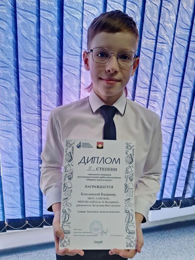 на секции «Зоология и экология животных»: Матвеев Лев - 1 место (об. «ЭкоГрад»),Чичерин Георгий - 2 место, Ким Маргарита и Труфанова Виктория - 3 место (об. «Скарабей»);